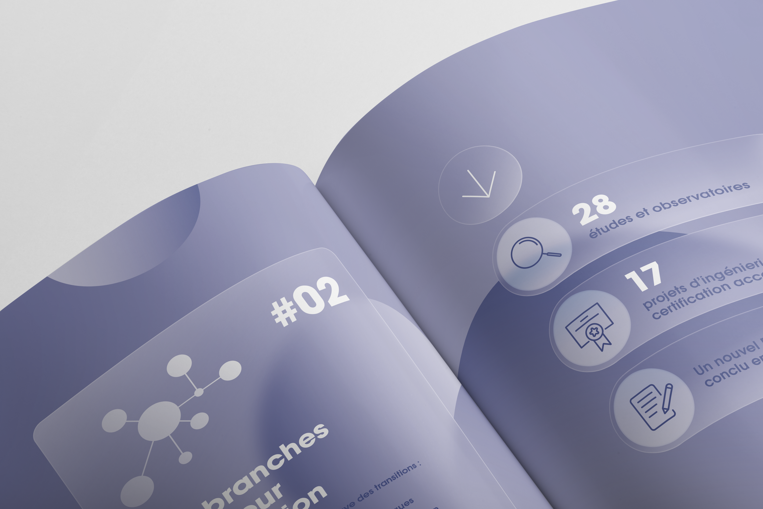Au-delà de l’obligation institutionnelle, l’enjeu était de produire un document capable de traduire visuellement les valeurs de transparence de l’organisation et sa capacité à rassembler des univers professionnels multiples au sein d’un même écosystème.