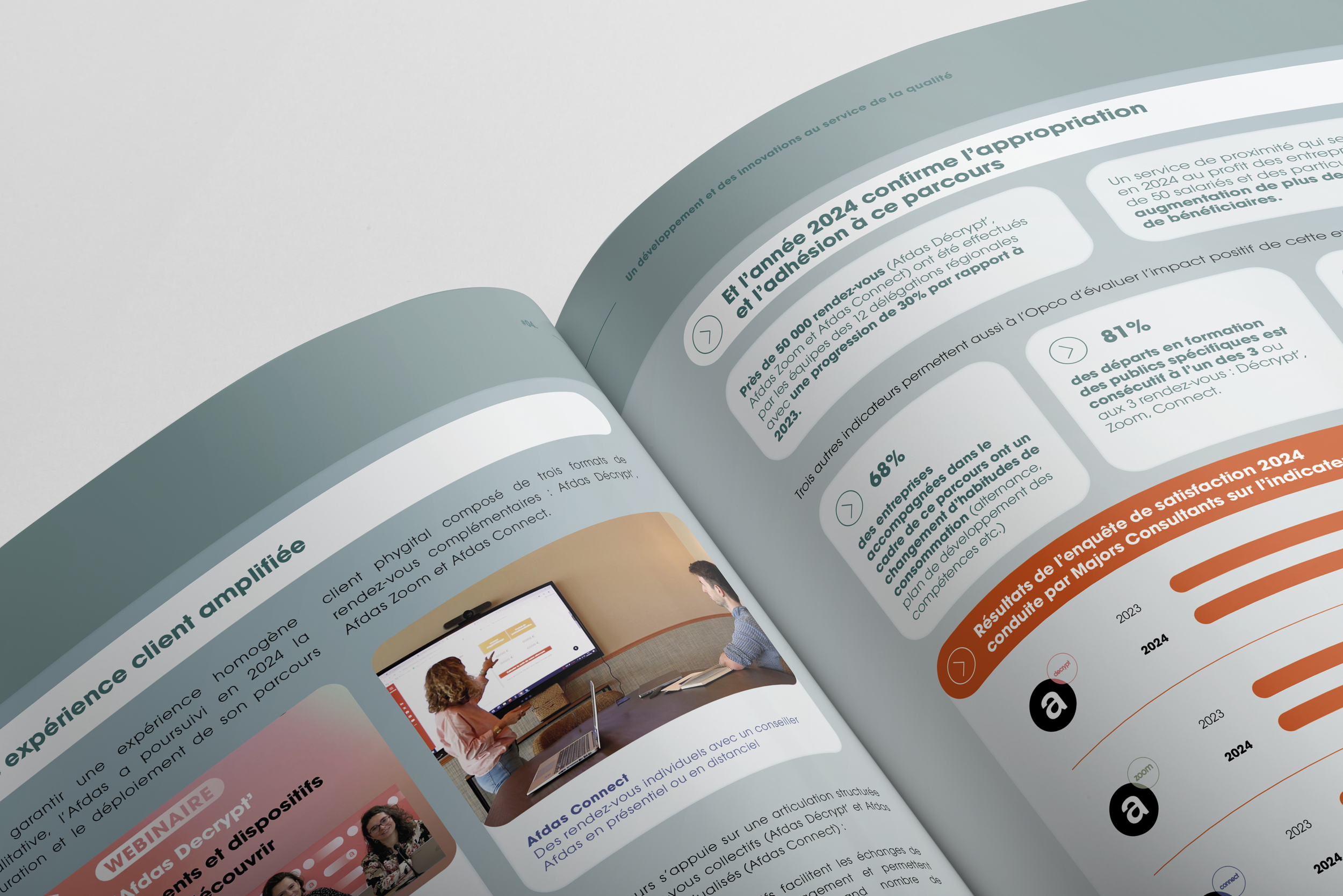 Le rapport d’activité 2024 de l’AFDAS se présente comme un document institutionnel clair, structuré et accessible, tout en affirmant une identité visuelle forte.